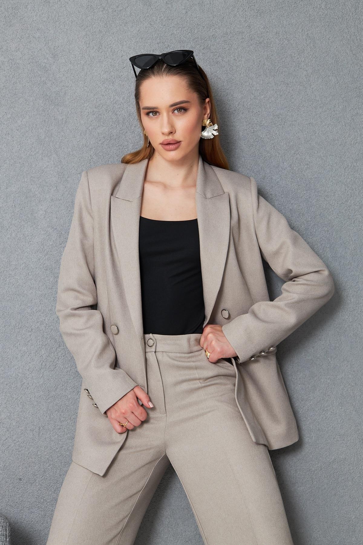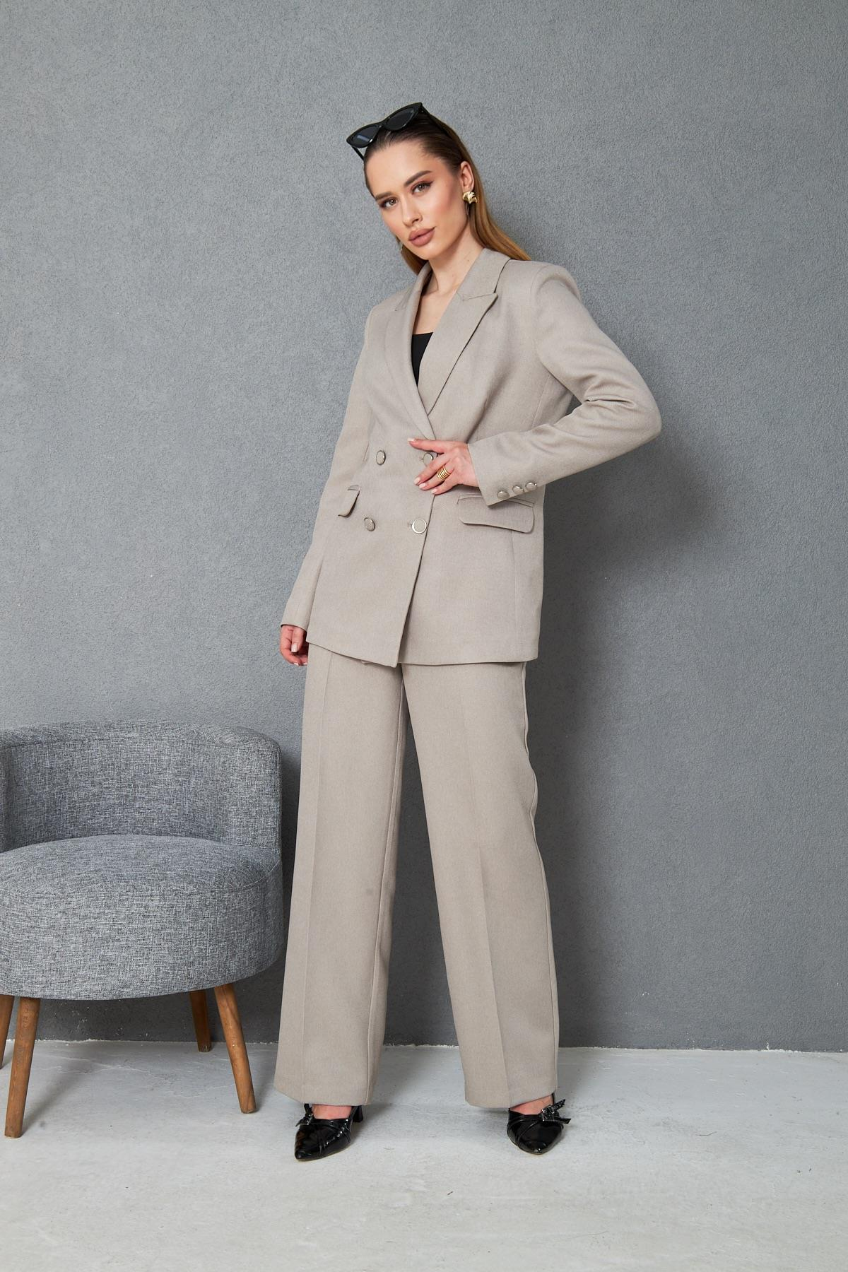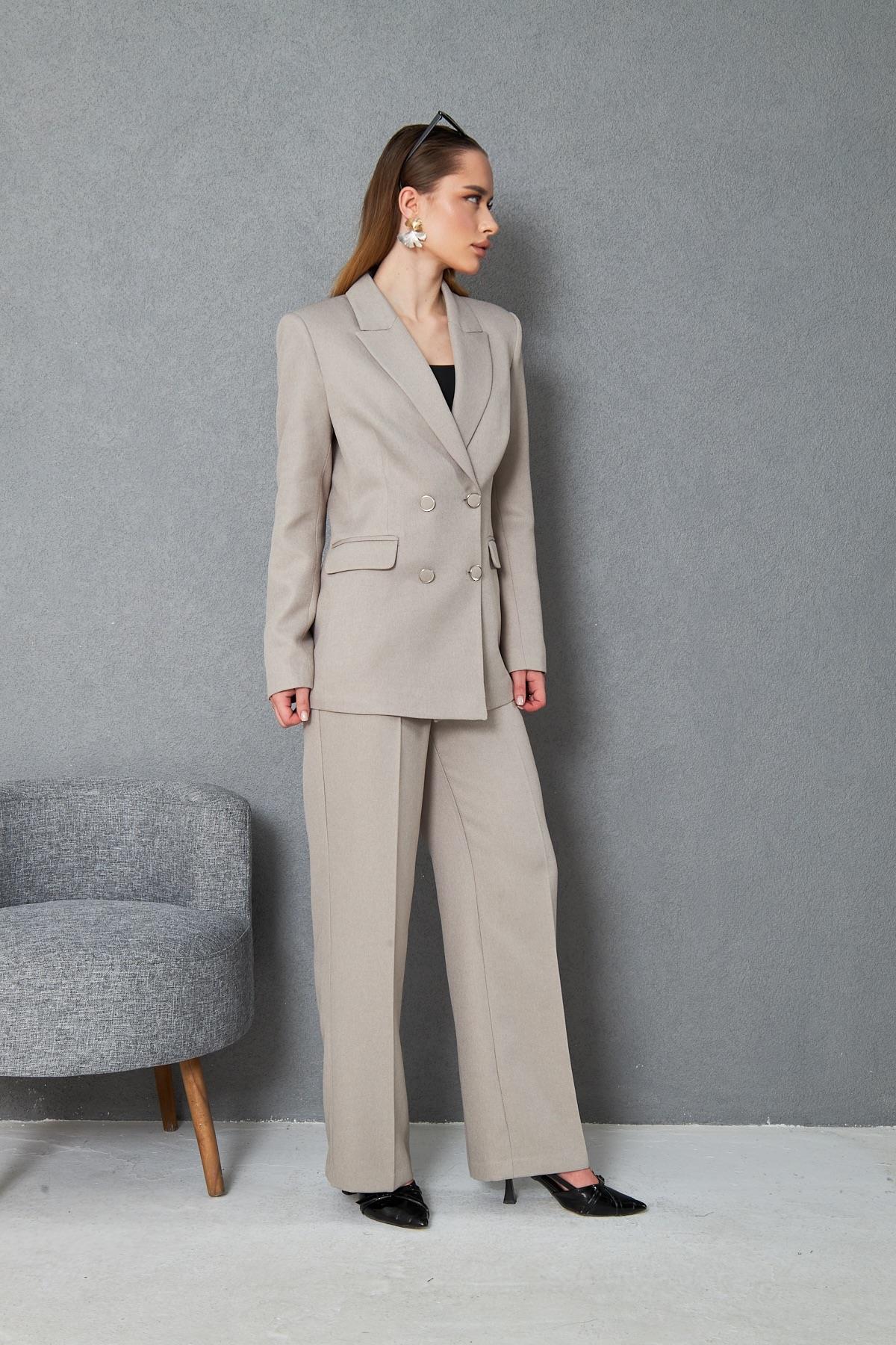 4 Düğmeli Kruvaze Yünefekt Takım Bej (832)