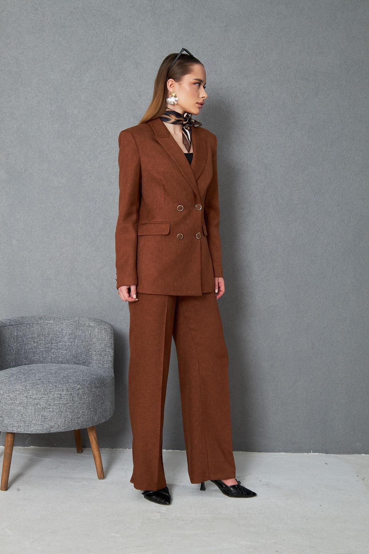 4 Düğmeli Kruvaze Yünefekt Takım Kahve (832)