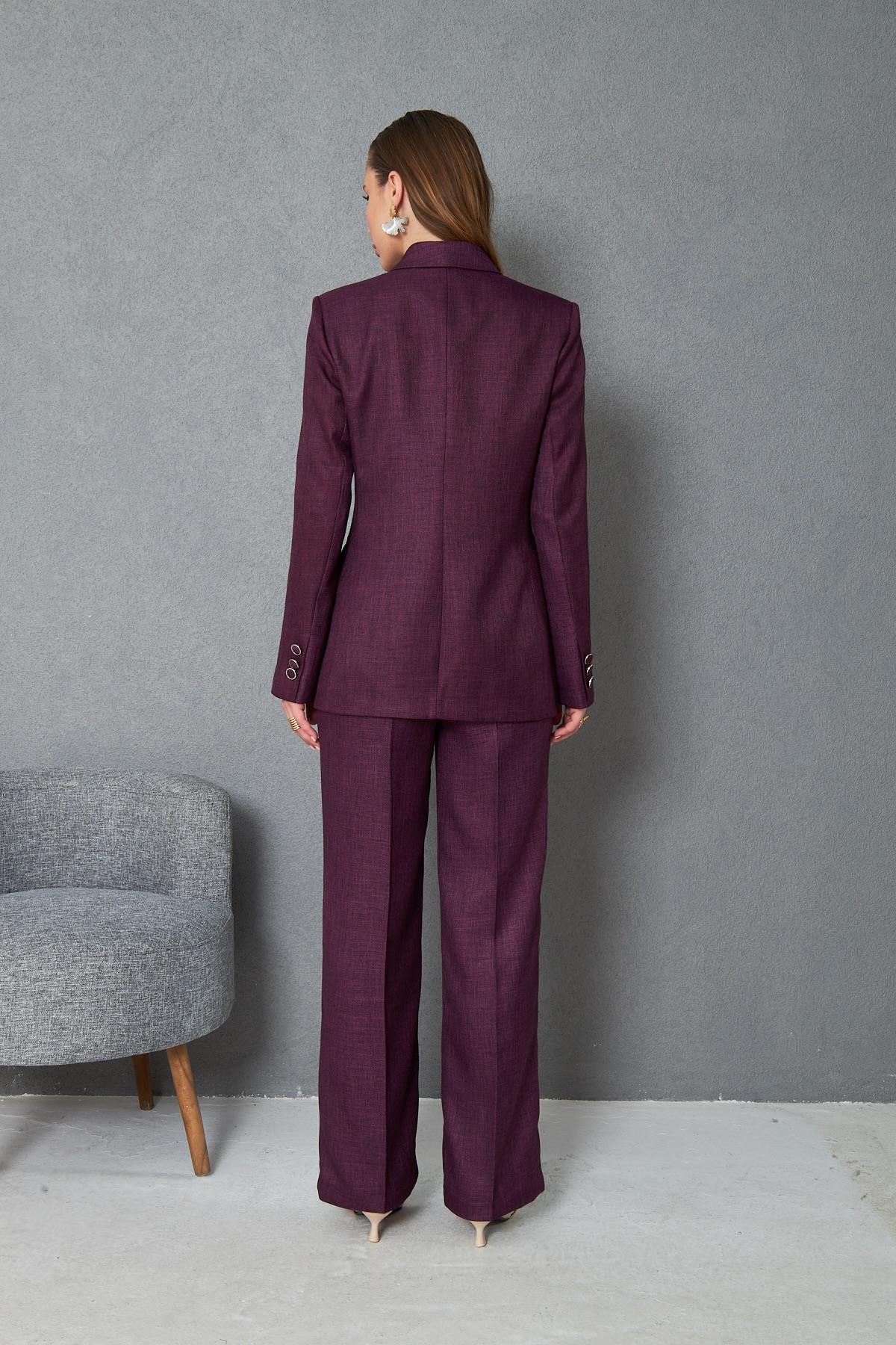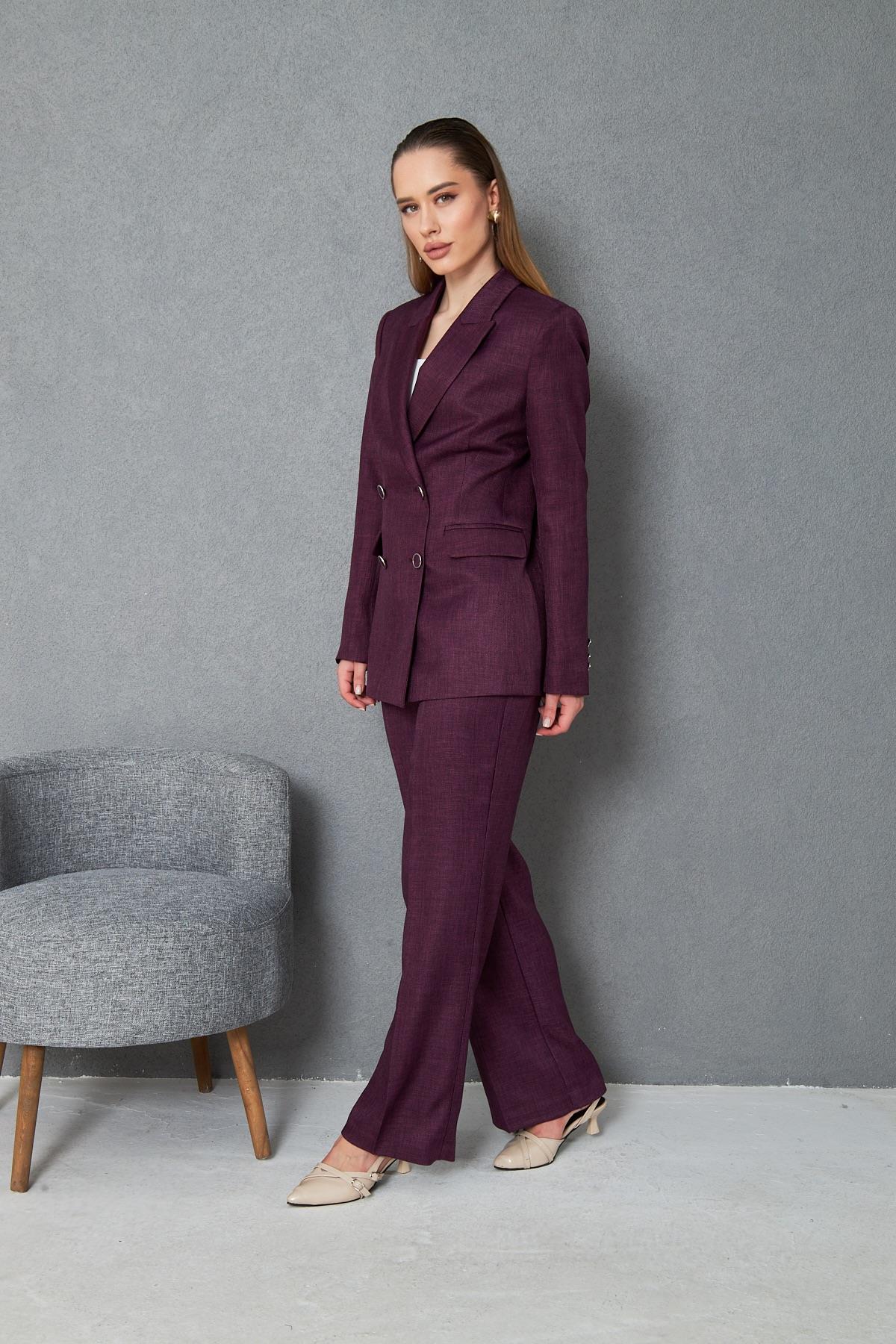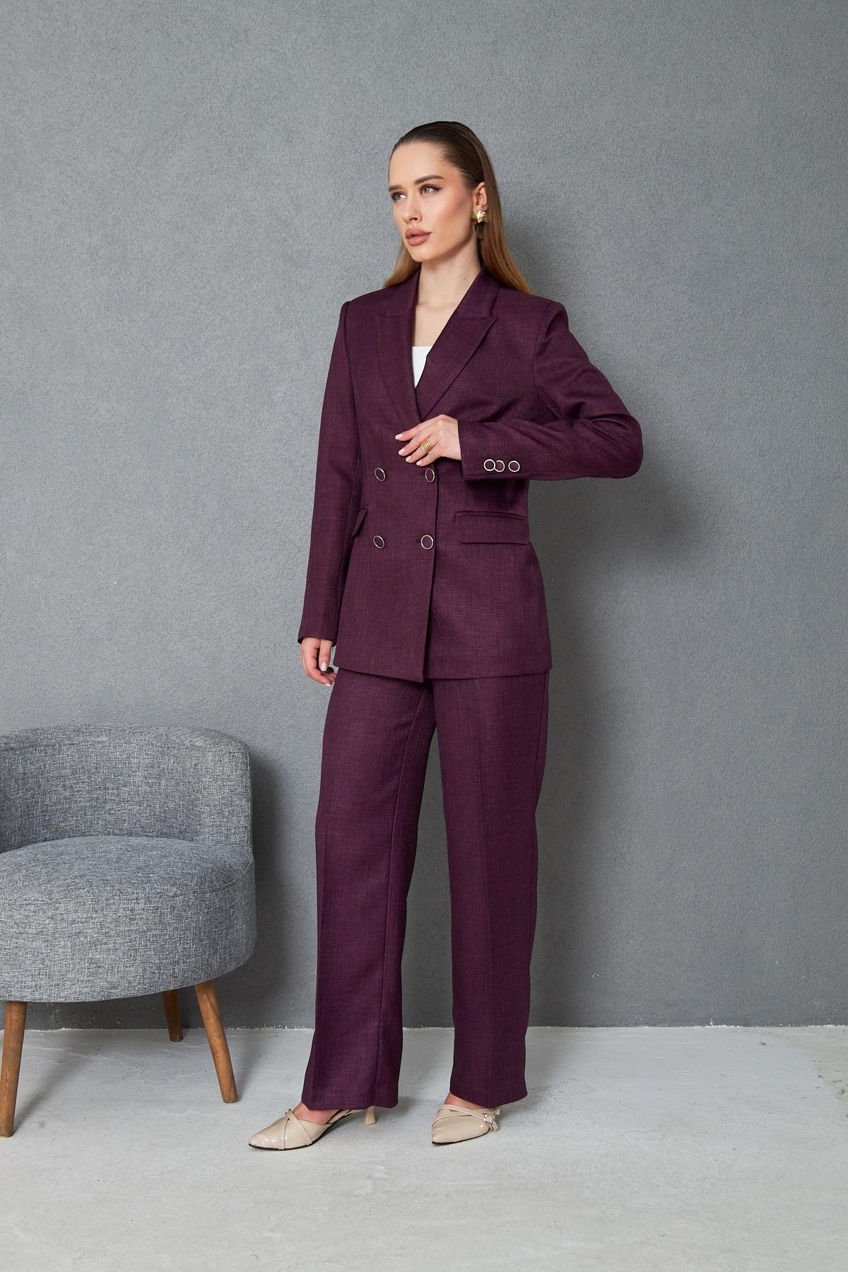 4 Düğmeli Kruvaze Yünefekt Takım Mürdüm (832)