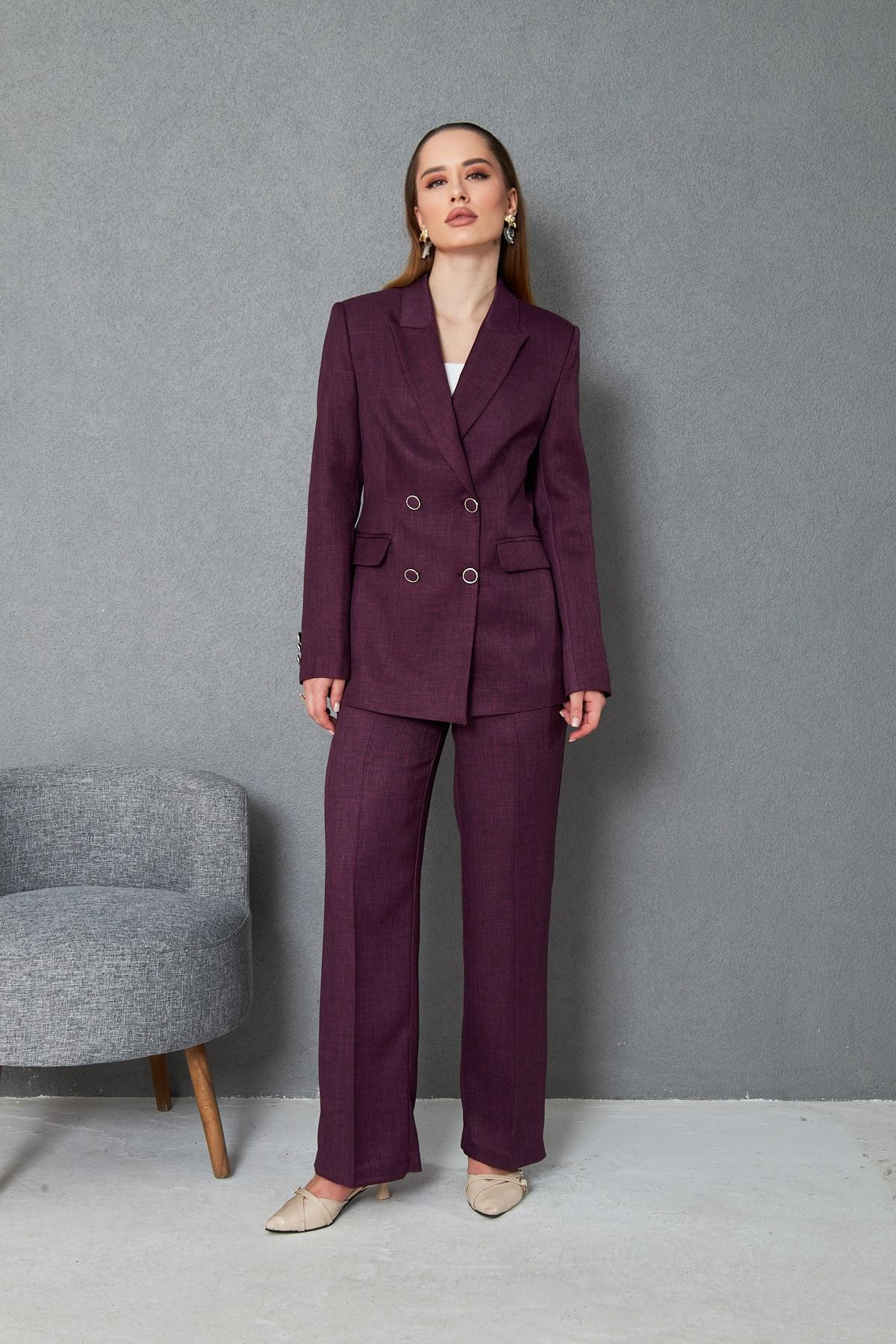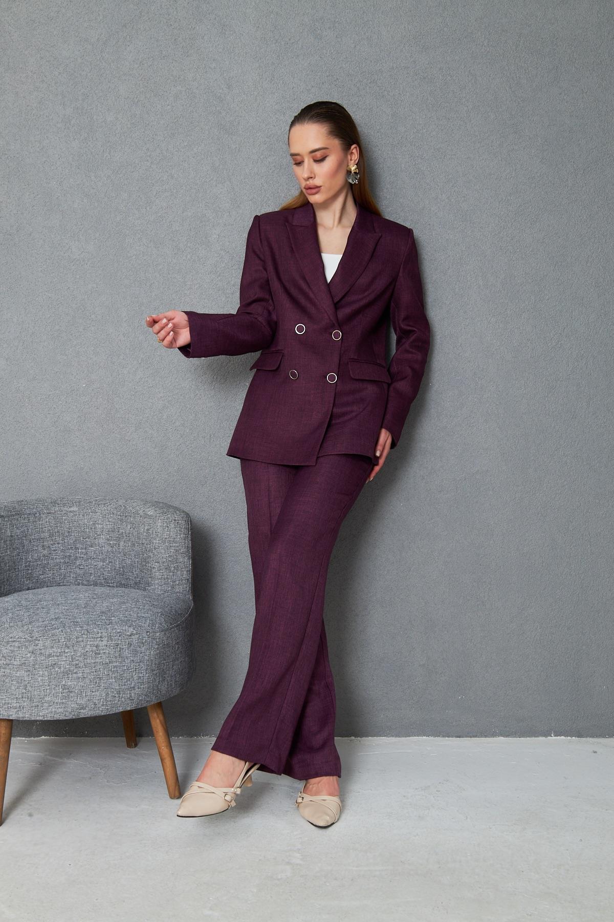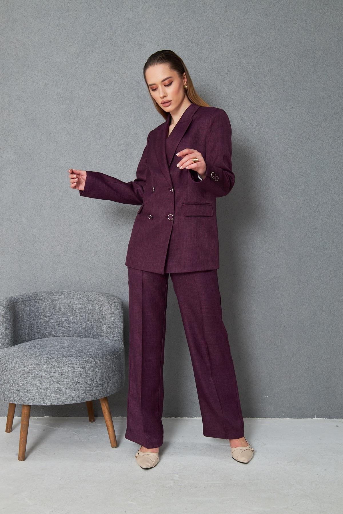 4 Düğmeli Kruvaze Yünefekt Takım Mürdüm (832)