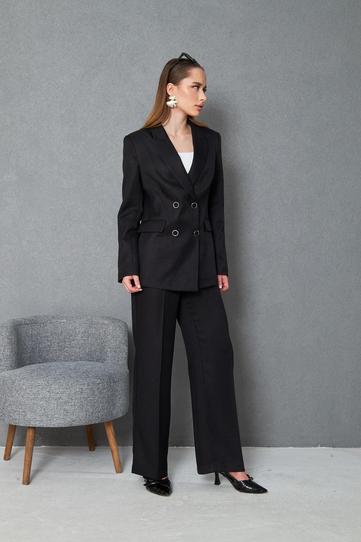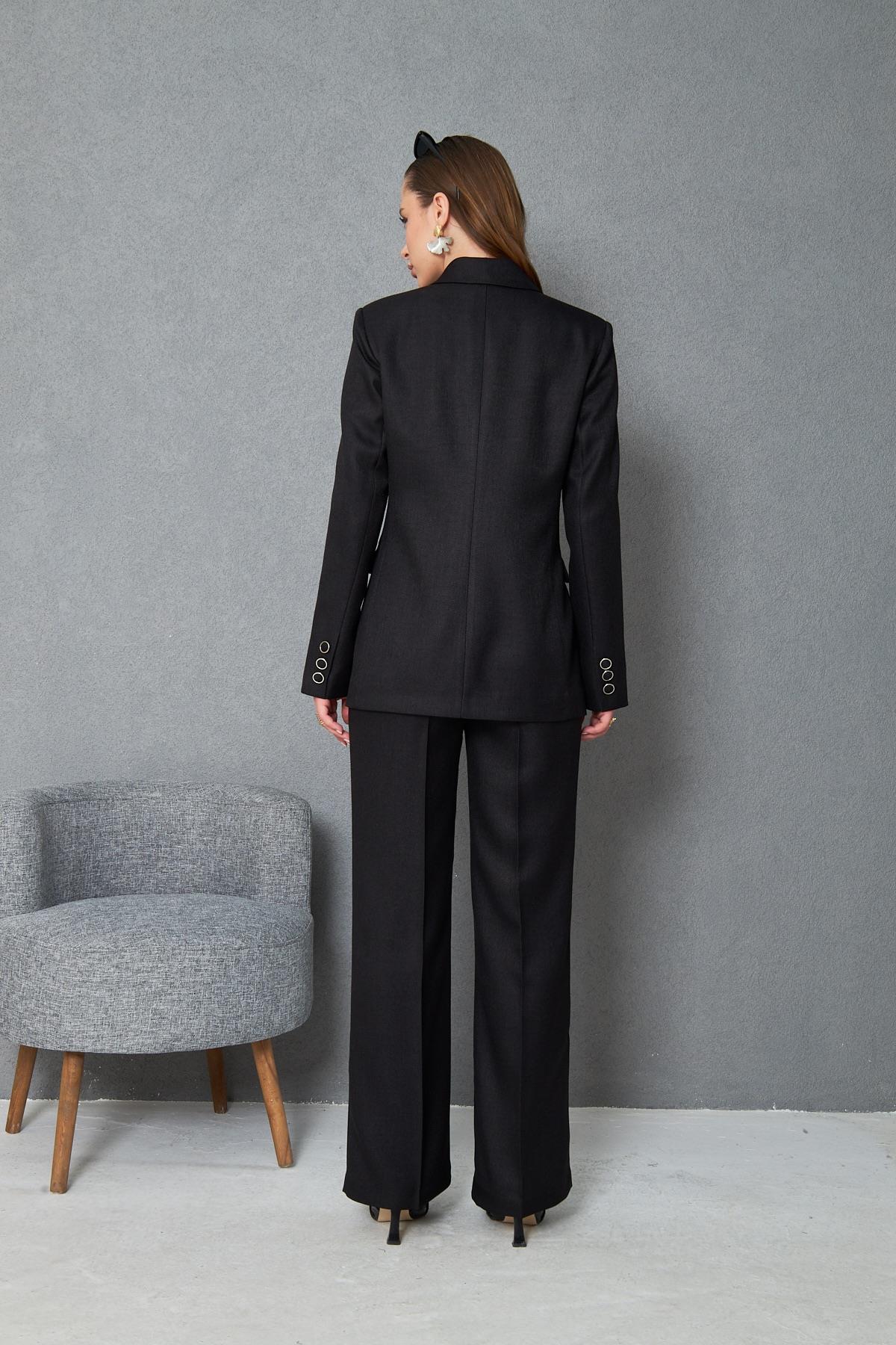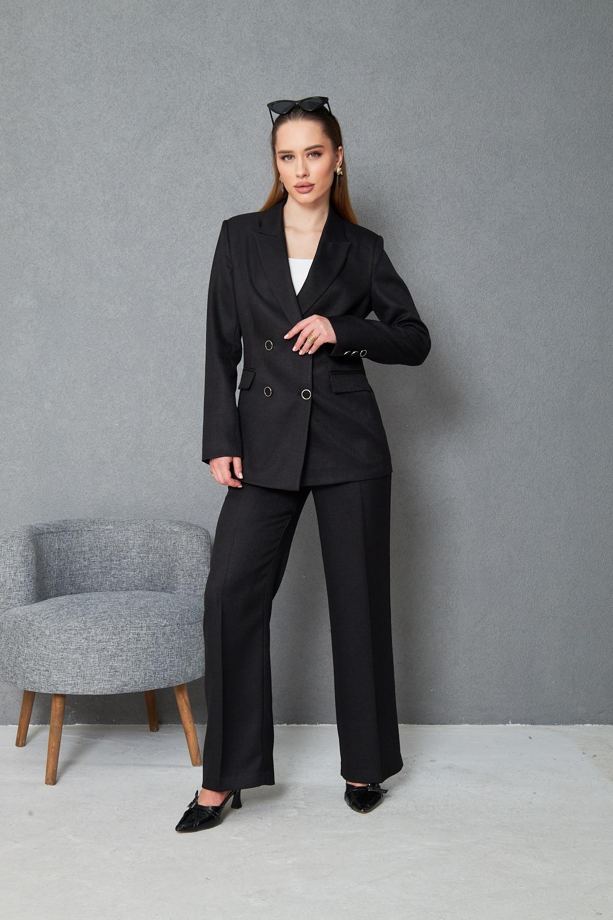 4 Düğmeli Kruvaze Yünefekt Takım Siyah (832)