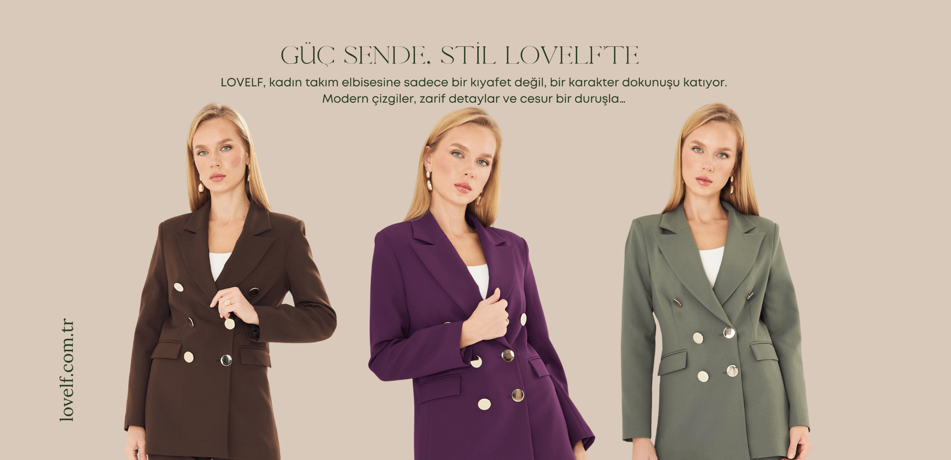 Güçlü, zarif ve modern bir stile adım atmak için doğru yerdesiniz. LOVELF’in size özel tasarladığı kadın takım elbise ve giyim koleksiyonuyla tanışın.