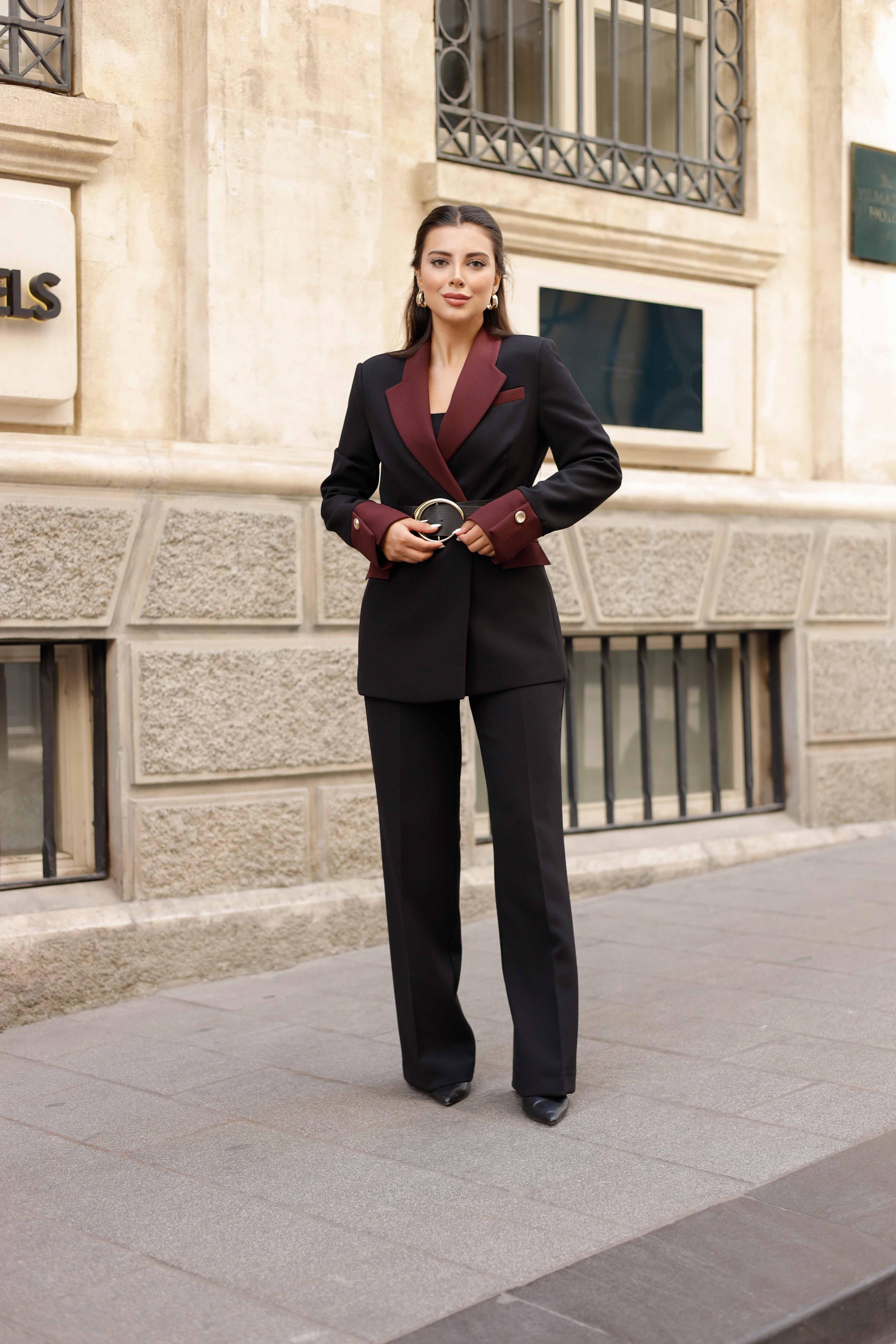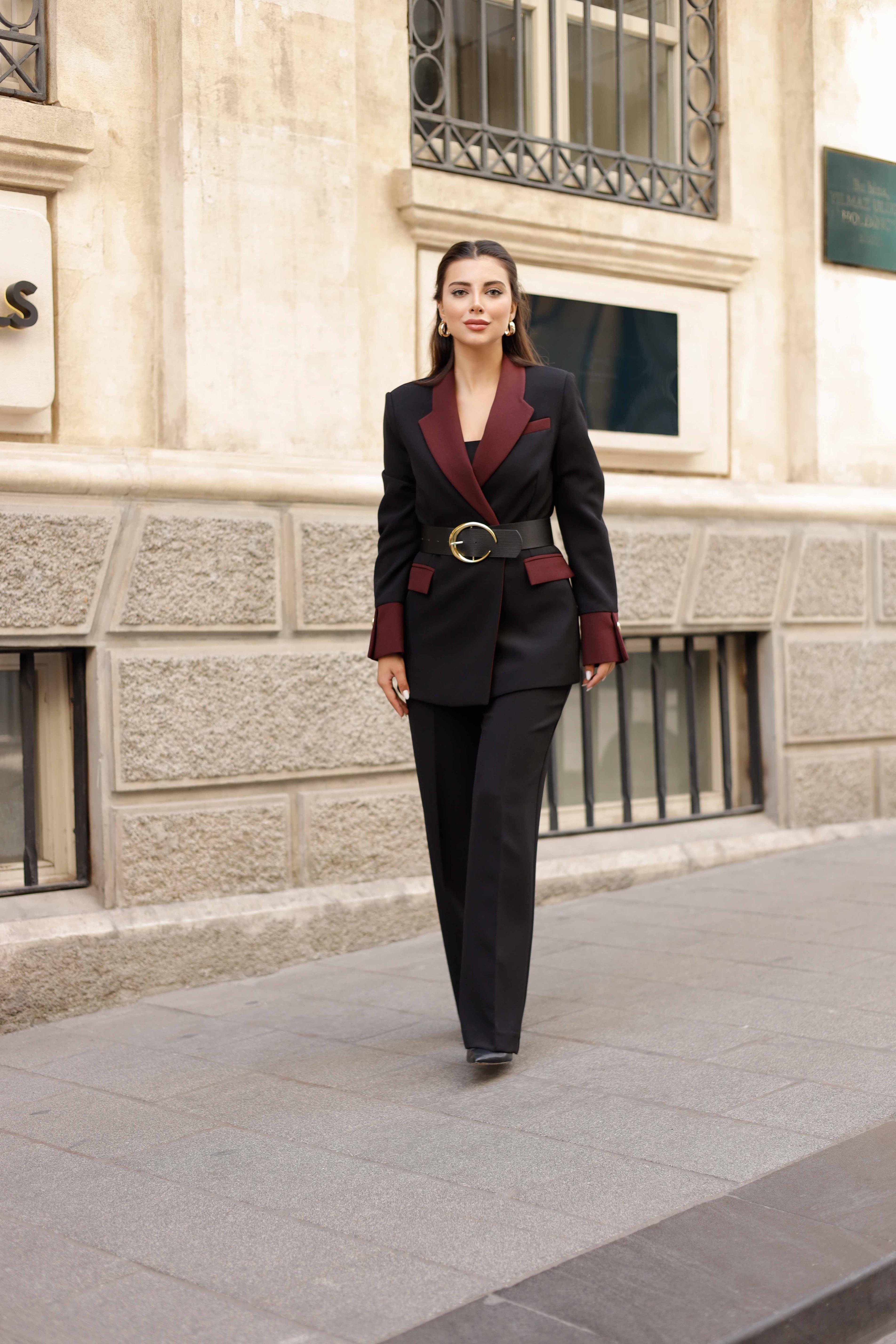 Gold Kemerli Garnili Kruvaze Takım Siyah (857)