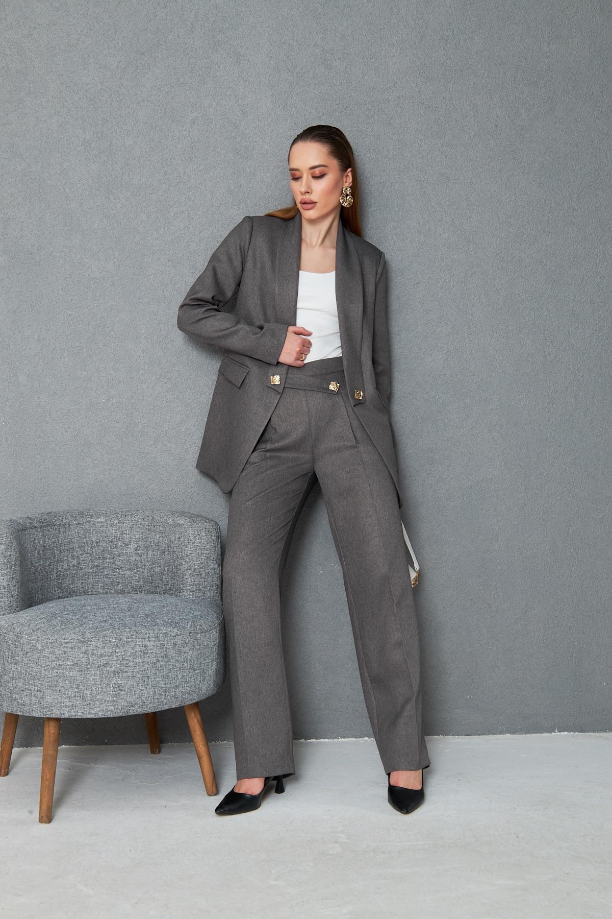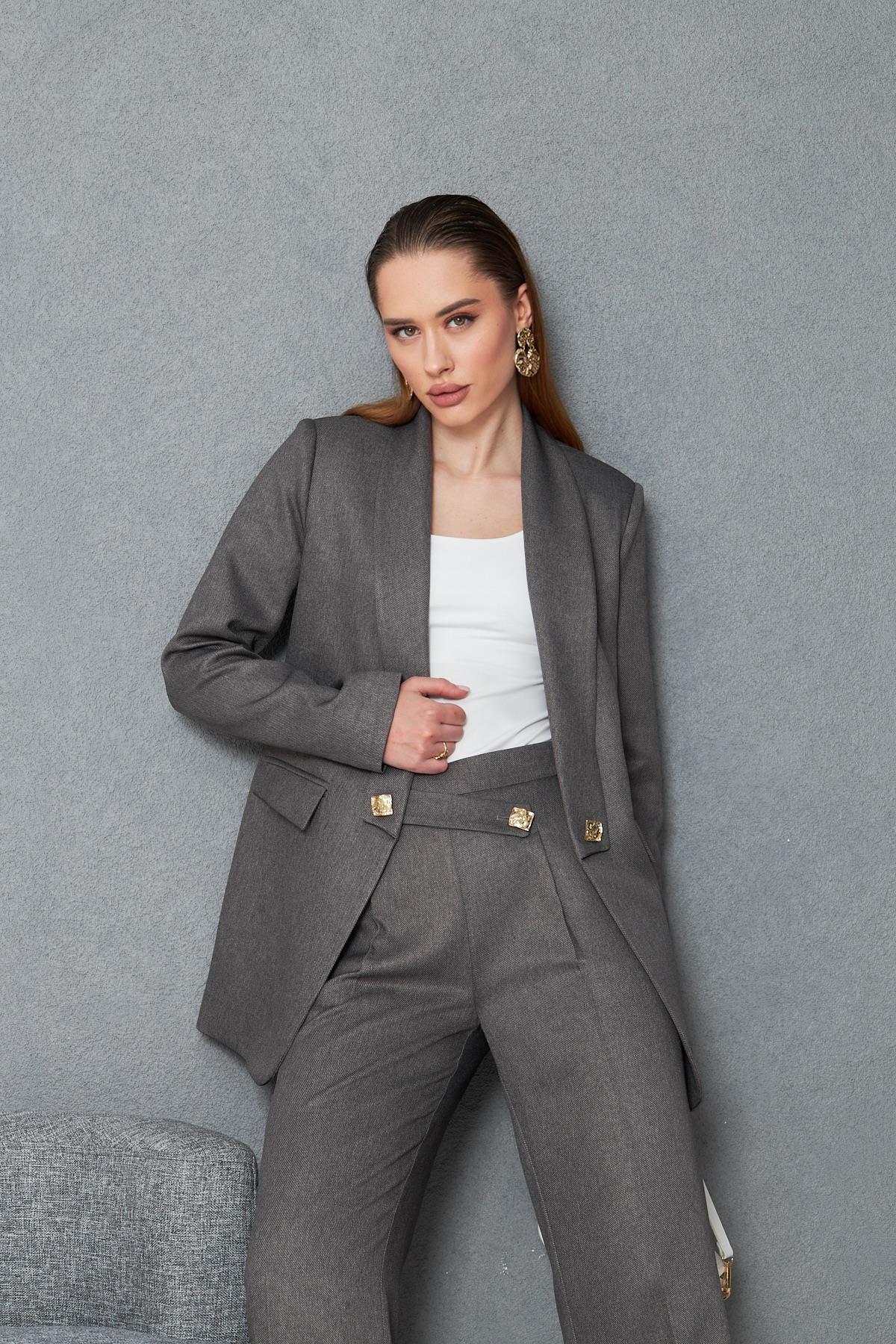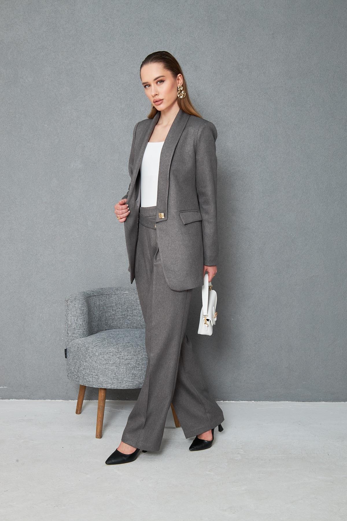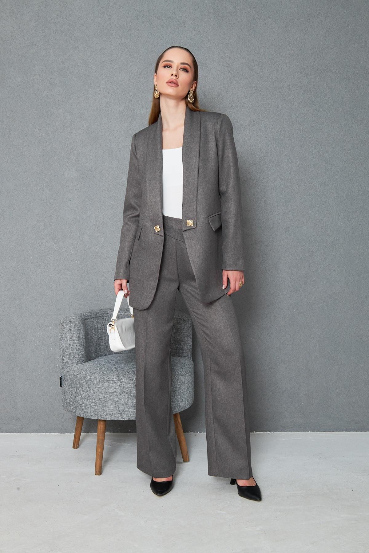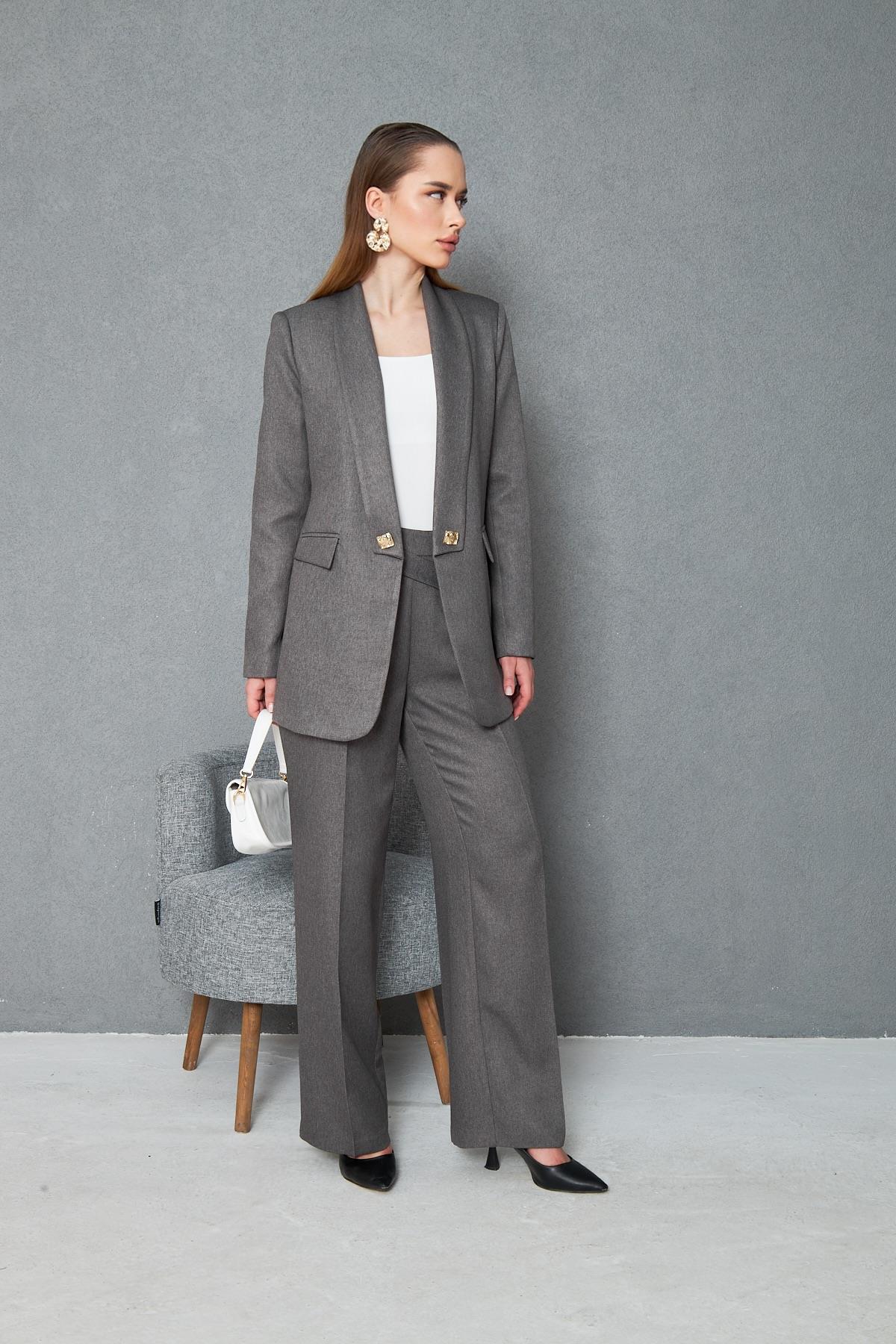 Kare Düğmeli Yünefekt Takım Antrasit Düz (842)